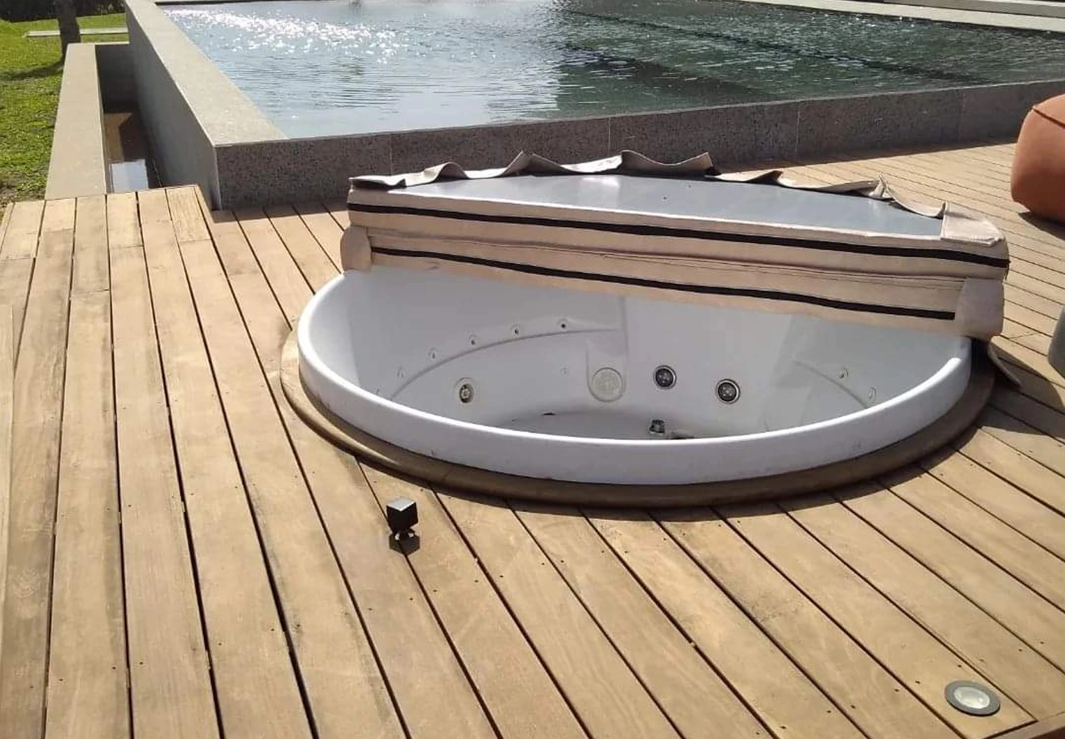 Fabricada sob medida, pode ser projetada para diversos modelos de SPAs e banheiras. Não acumula água e está disponível em várias opções de cores, permitindo integração total com o ambiente.